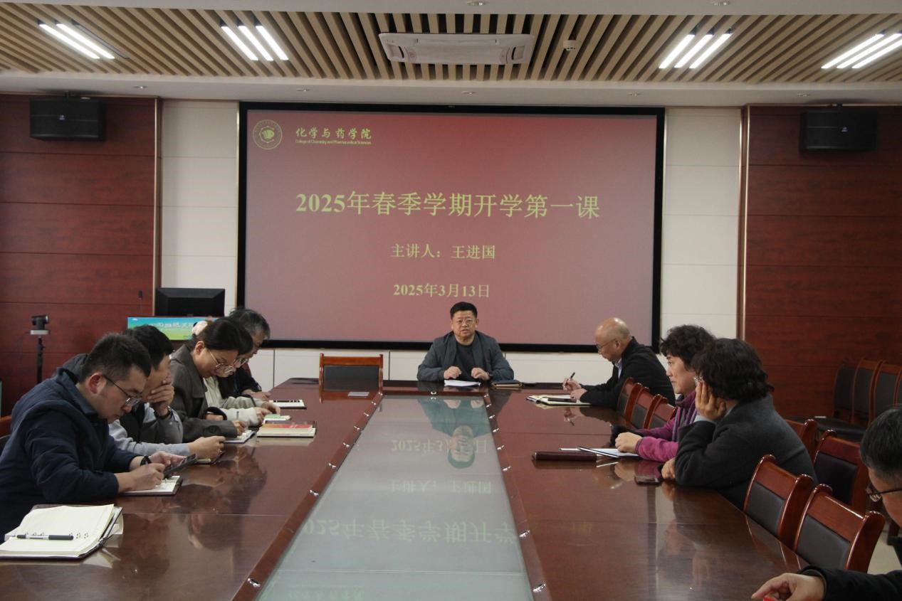 3月13日,太阳成集团tyc234cc于化学楼207会议室开展2025年春季学期开学第一课,学院党委书记王进国主讲,全体教职工参加。