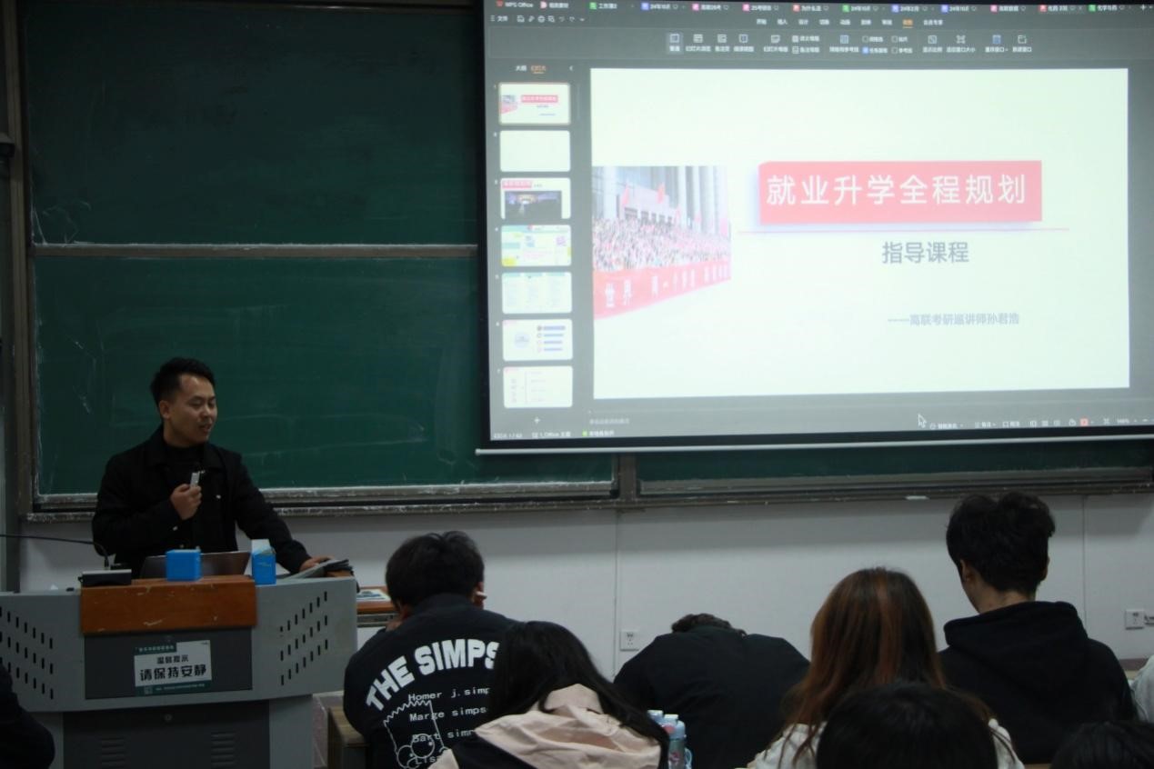10月24日,为帮助学生了解考研形势,解读考研流程,提高学生学习动力,树立清晰的奋斗目标,夯实学院优良学风建设,太阳成集团tyc234cc于教学楼b103开展了升学就业考研指导讲座。本次讲座邀请高联考研城阳校区校长孙君浩老师做升学考研指导,太阳成集团tyc234cc2023级学生参与。