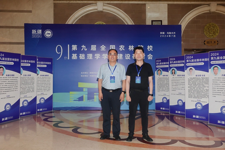 为全面贯彻落实党的二十大精神和习近平总书记关于教育、农业强国和乡村振兴的重要论述,深入开展学习贯彻习近平新时代中国特色社会主义思想主题教育,推进课程思政全面融入数理化等基础理科课程教学,加快推进新农科背景下基础理学学科(专业)建设,实现基础理学学科与农林学科深度交叉融合,全面提高人才培养质量,更好地发挥基础理学学科(专业)在知农爱农新型人才培养中的基础性作用,由新疆农业大学主办的“第九届全国农林院校基础理学学科建设研讨会”于2024年7月25日-7月29日在新疆乌鲁木齐市召开,学院李帅帅教授、王修中教授参加此次研讨会。