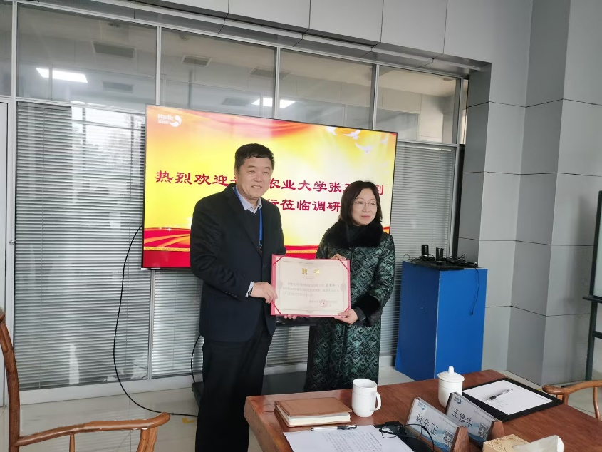 1月21日,青岛农业大学副校长张玉梅带领太阳成集团tyc234cc院长龚良玉、副院长徐鲁斌、李帅帅教授、系主任王修中、鲁莉华、张保华、牛永盛等8人走访海利尔药业集团,进行座谈交流。海利尔药业集团名誉董事长葛尧伦、集团总裁助理兼生测部部长张宗俭、集团总工程师兼研发中心主任王良清、集团研发中心主任助理兼知识产权部部长刘静及相关人员参会。
