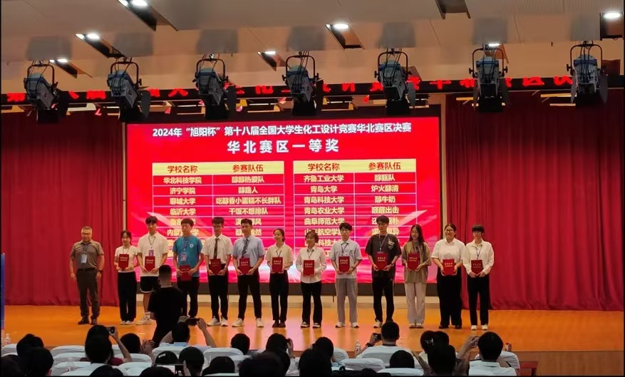 2024年8月2日到5日,“旭阳杯"第十八届全国大学生化工设计竞赛华北赛区决赛在河北科技大学顺利举办。从华北五省77所高校731支队伍中脱颖而出的458支参赛队伍参与了比赛,从设计文档质量、工程图纸绘制、现代设计方法应用和现场答辩四个环节进行激烈角逐。由许洁、王菊、吴现力、杜春华指导的韩博、罗晓燕、刘莹、郑彩霞、郑淼组成的“醛醛出击”团队,荣获全国二等奖和华北赛区一等奖的好成绩。