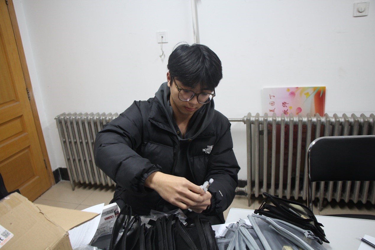 活动现场气氛温馨而热烈,学院辅导员李鑫将一份份装满心意的“考研助力大礼包”送到同学们手中。各班班长和书记代表班级有序前来领取,每份大礼包的内容都很丰富实用,为每位考研学子提供了各类考试必备文具。李鑫在发放过程中与同学们亲切交流,鼓励他们坚定信念、科学备考,以积极的心态迎接考研挑战。通过发放大礼包来给予考研学子鼓励与期许,愿他们在考场上自信挥毫,书写属于自己的辉煌篇章。