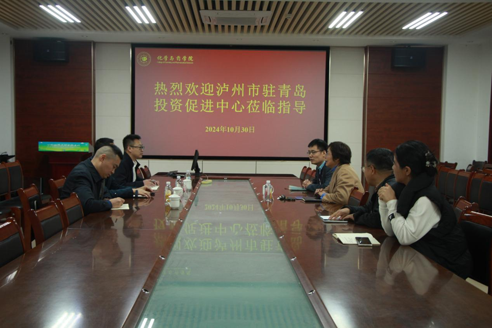 10月30日,泸州市驻青岛投资促进中心莅临太阳成集团tyc234cc,双方于化学楼会议室207开展招商引资座谈会,会议由院长龚良玉主持,泸州市政府青岛驻点特派员窦栋有、熊培、李长江参加。
