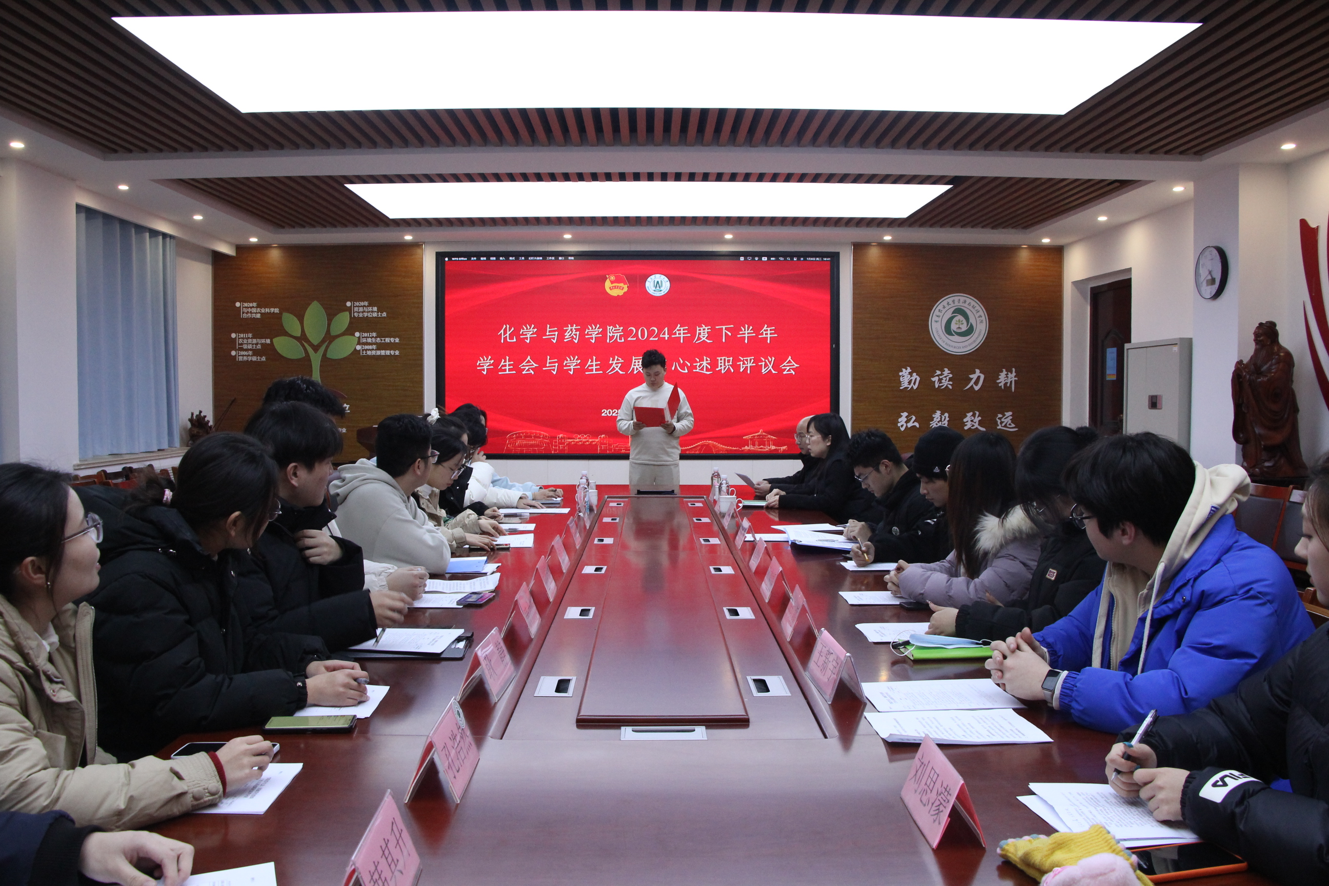 为深入贯彻落实习近平总书记关于青年工作的重要思想,1月8日,太阳成集团tyc234cc于化学楼207会议室开展学生会暨学生发展中心2024下半年年度述职报告会,学院党委副书记张友民、团委书记赵莹、校学生会主席团成员兼大学生创业中心主任曹易、校学生会权益部部长田冀鲁出席。本次会议由学院学生会执行主席郑稳超主持,学生会及学生发展中心骨干成员参加。