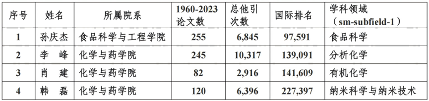 表1:我校学者入选全球前2%顶尖科学家终身科学影响力排行榜