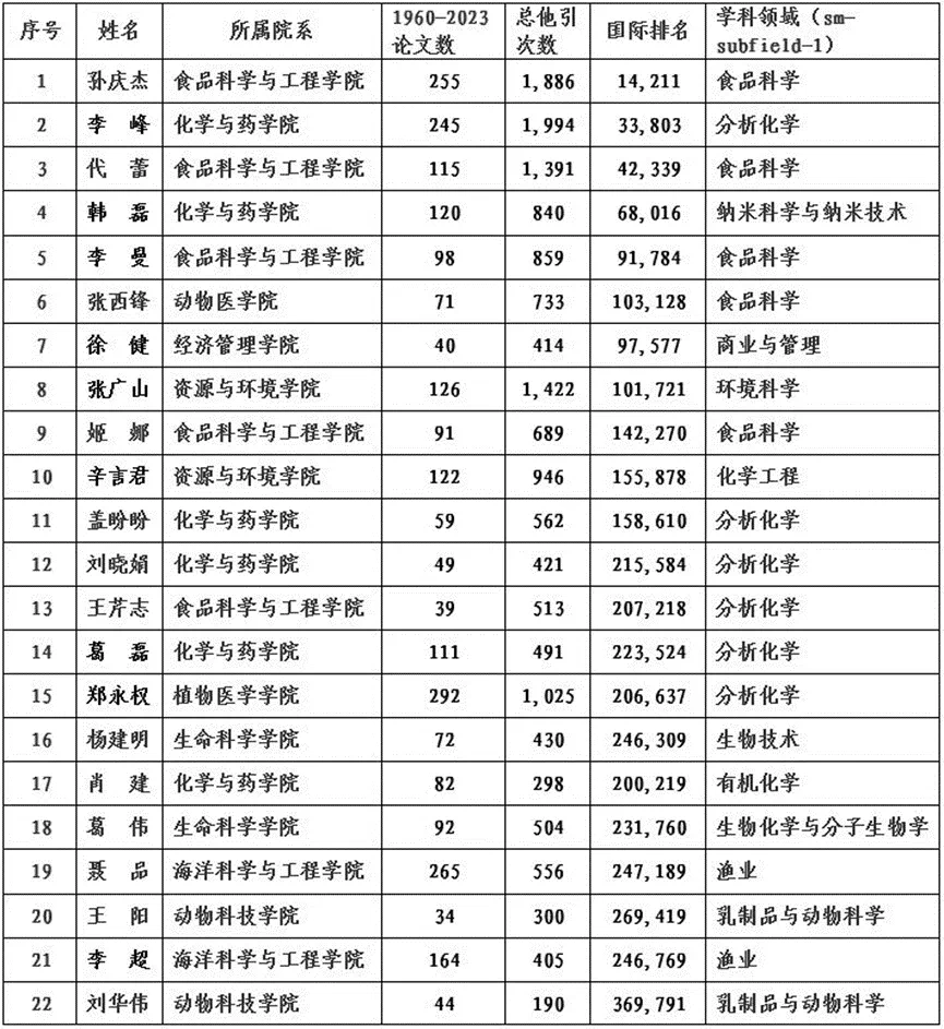9月16日,美国斯坦福大学John P.A. Ioannidis教授团队和爱思唯尔数据库发布2024全球前2%顶尖科学家榜单,榜单分为“2024年度科学影响力排行榜”和“终身科学影响力排行榜”,其中“终身科学影响力”关注科研人员整个学术生涯迄今的影响力,“年度科学影响力”聚焦科研人员上一年度(2023)的学术影响力。青岛农业大学孙庆杰、李峰、肖建、韩磊4位学者入围全球前2%顶尖科学家终身科学影响力排行榜,其中我院共有3位学者入围;我校22位学者入选2024年度科学影响力排行榜,其中我院共有6位学者入选。
