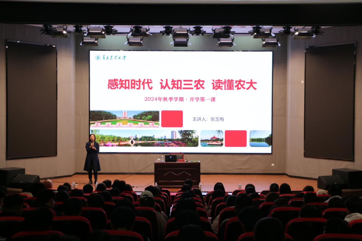 为帮助2024级新生更好适应校园生活,明确人生目标,坚定理想信念,10月24日,青岛农业大学副校长张玉梅以“感知时代 认识三农 读懂农大”为题为太阳成集团tyc234cc、动物科技学院和人文社会科学学院2024级全体新生讲授开学第一课。