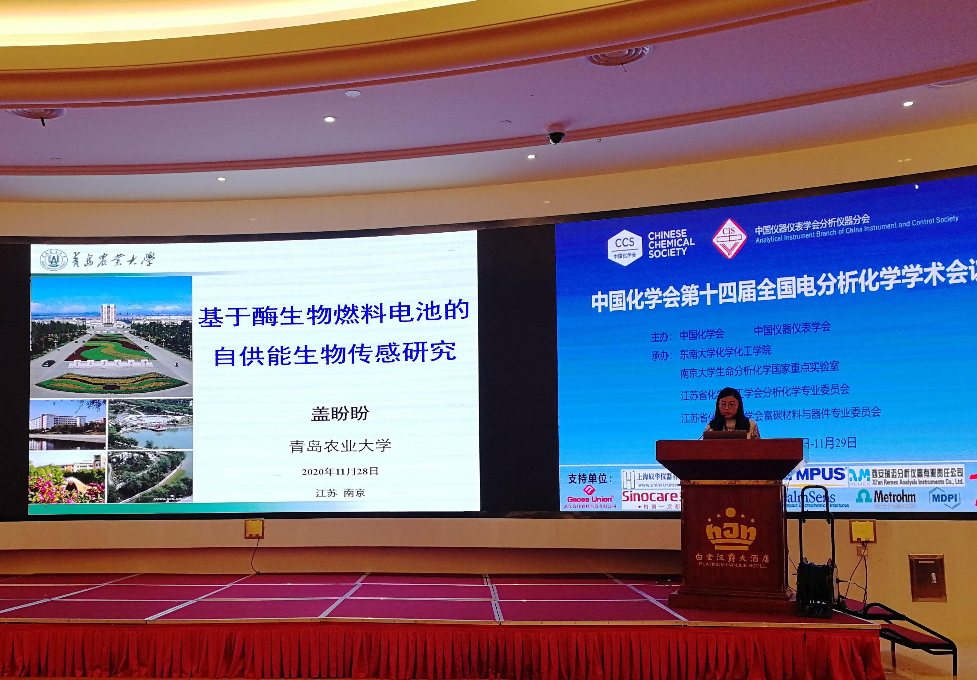 由中国化学会和中国仪器仪表学会主办,东南大学化学化工学院与南京大学生命分析化学国家重点实验室承办的第十四届全国电分析化学学术会议于2020年11月26日至2020年11月29日在江苏省南京市召开。课题组李峰教授、侯婷教授、盖盼盼教授、常加富博士和课题组14名研究生参加会议交流学习。李峰教授做邀请报告,盖盼盼教授做口头报告并获优秀青年报告奖。